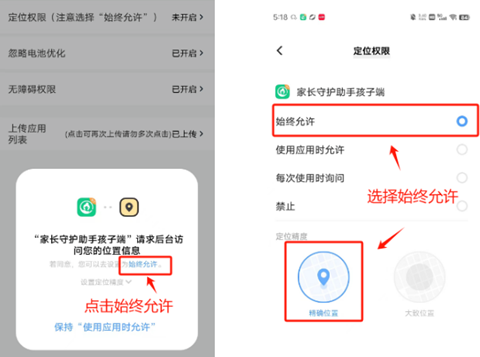 第三点:如果小孩手机品牌是荣耀、小米及定制系统的请“解绑,退出孩子端后”后修改定位权限
