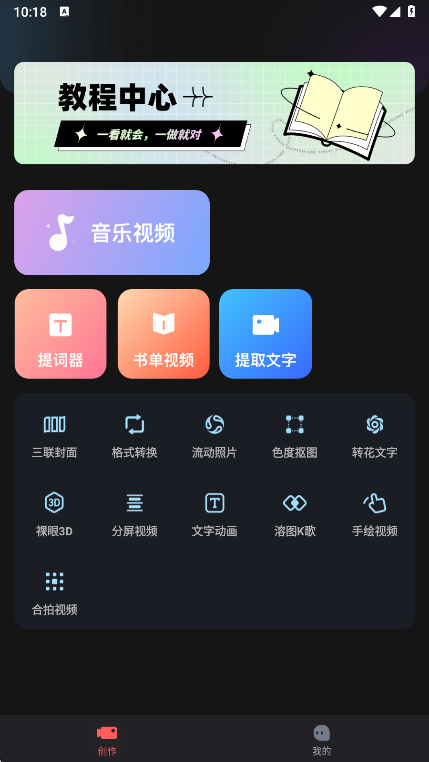 2、点击首页创作,这里是有着众多的功能的,支持格式转换等等