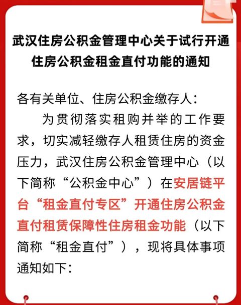 武汉公积金直接付房租!已有不少人成功: