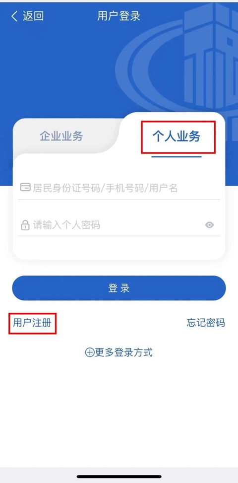 1、打开江苏税务app,点击右下角“我的”,选择“个人业务”,输入相应信息和密码,点击“登录”。