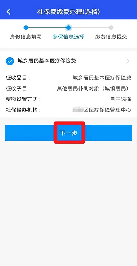 5、页面会显示缴费人参保信息,点击“下一步”。