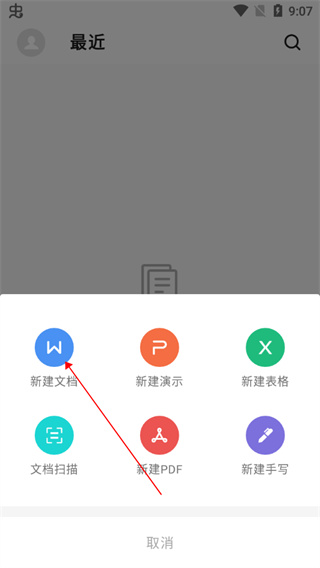 接着点击【新建文档】,进入选取模板页面;