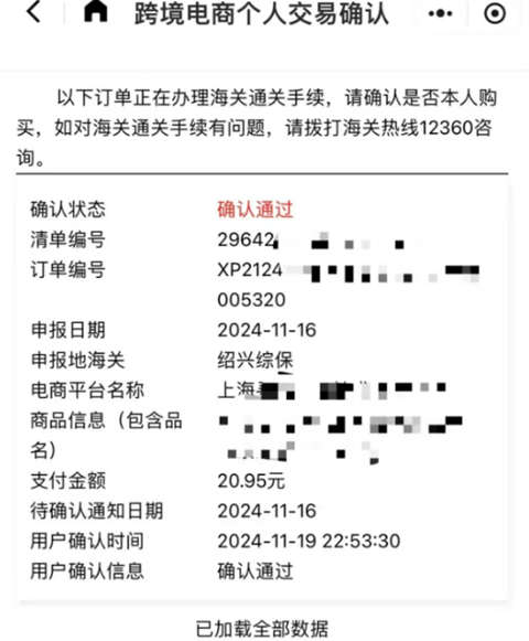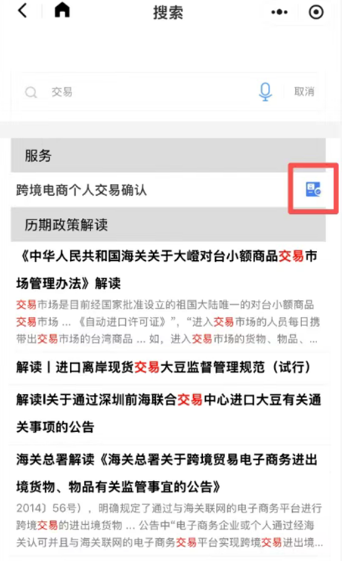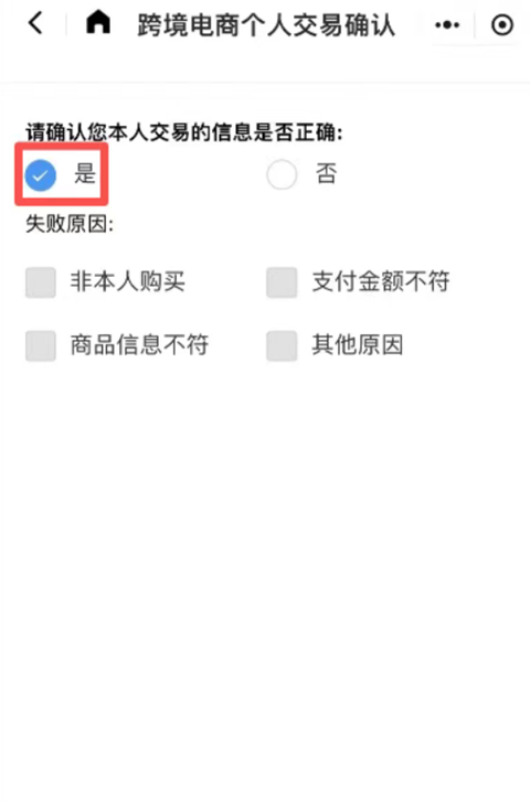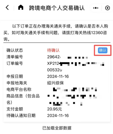 3、首行显示“跨境电商个人交易确认”点击右侧按钮。