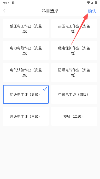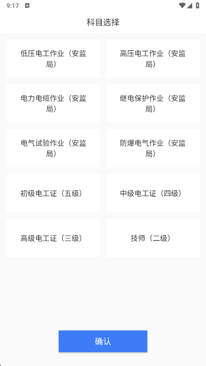 1、在本站下载安装打开,来到科目选择,点击确认