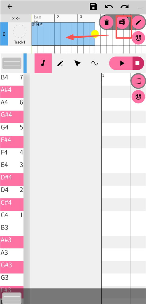 4、点击可创建音符。