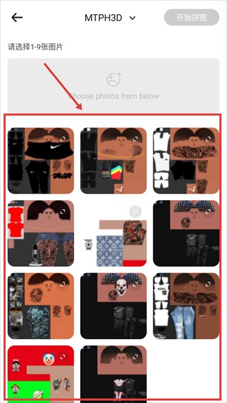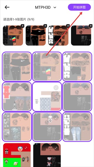 3、选够图片后,点击页面右上角【开始拼图】按钮,系统会自动生成拼接后的图片效果。
