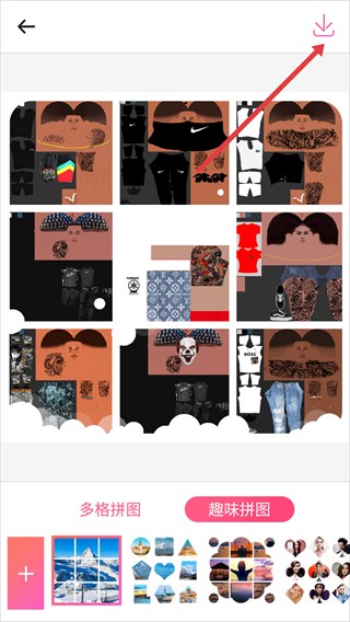 4、拼图完成后,在结果页面点击右上角【下载】按钮,可将拼接好的图片保存到手机。