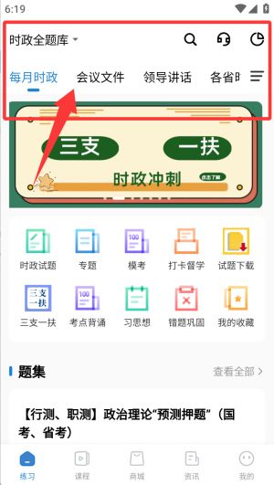 365时政提供每月时政、重要会议、领导讲话等多板块试题,内容紧跟时事热点,能帮助用户及时掌握最新政策动态和时政信息。对于备考公务员、事业单位等考试的用户,这些内容与考试大纲高度契合,可有效补充知识盲区。