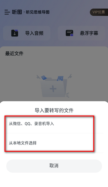 1、打开听图app,点击导入音频