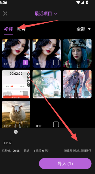 2、导入图片或是视频素材开始编辑。