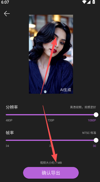 4、确认是你想要的效果,点击下方的确认导出,完成以后即可生成创作,想要用于其他作用可在相册中进行编辑。