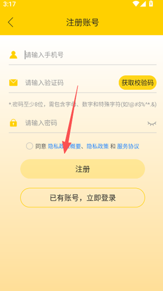 3、通过手机号码短信验证码的方式,完成新用户身份的注册。
