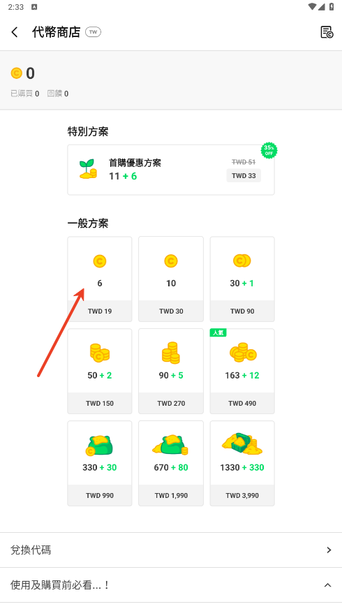 2.选择你要充值的数量。
