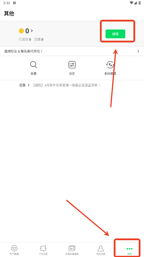 1、在本站下载Webtoon漫画后点击右下角的More