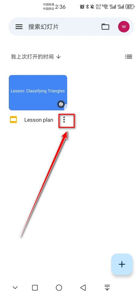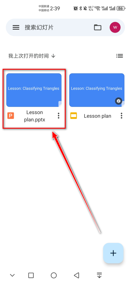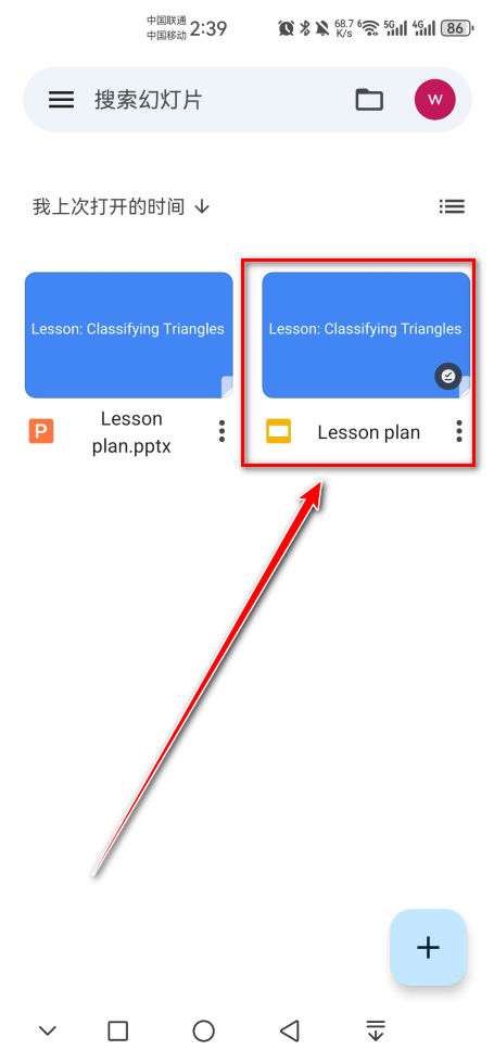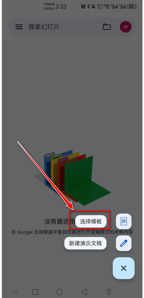 安装谷歌幻灯片APP,打开后点击底部 “+” 按钮。