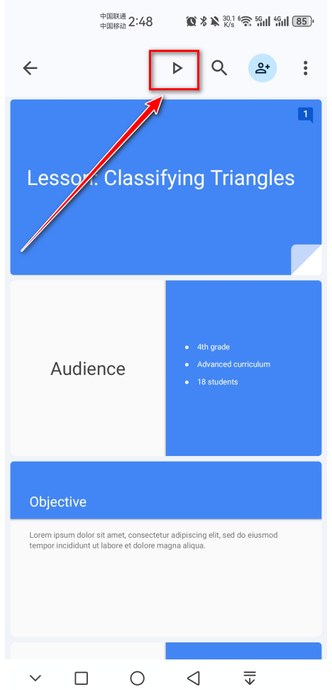 移动端:点击右上角 “播放” 图标,支持手势切换幻灯片。