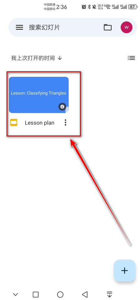 1.首先打开谷歌幻灯片,找到并点击我们想要播放的幻灯片。