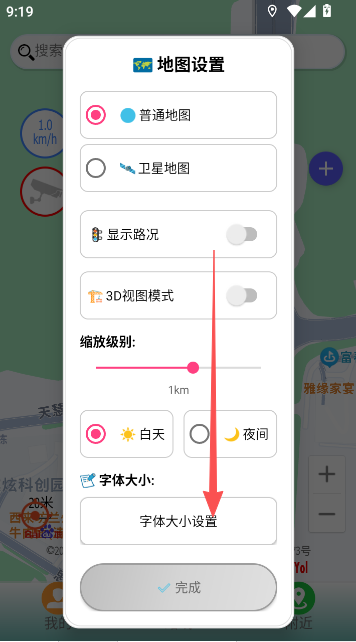 4、根据实际需求去设置应用程序字体和地图界面字体的大小部分。