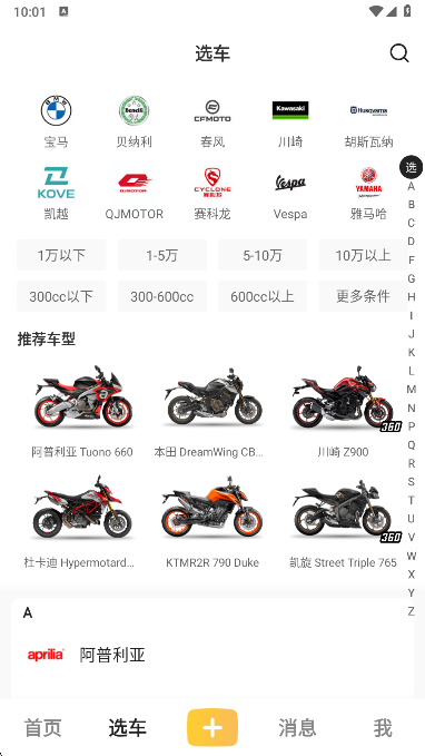 3、同时也是为用户提供到了选车版块,用户可以浏览到众多的摩托车