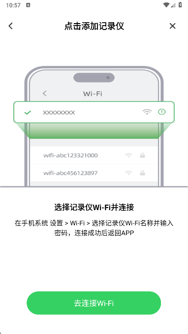 2、然后点击添加记录仪,保持同一WiFi下记录连接