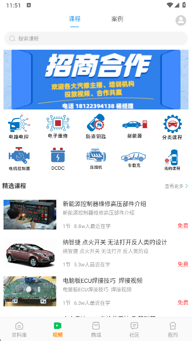 提供了丰富的车俩维修视频课程