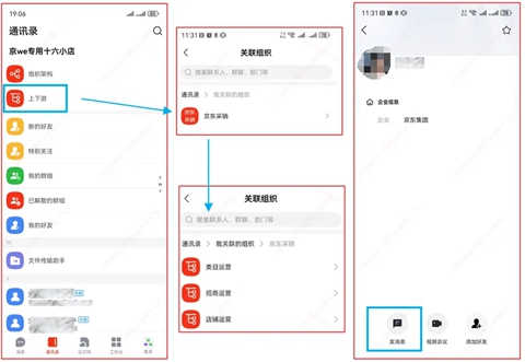 1.关联组织通讯录:通讯录已和京东商城商家与京东采销之间的关联关系数据打通,您登录后系统将默认将与您对应的京东采销置为好友关系,使得您可直接对话。无需线下找人、找关系再去添加好友。