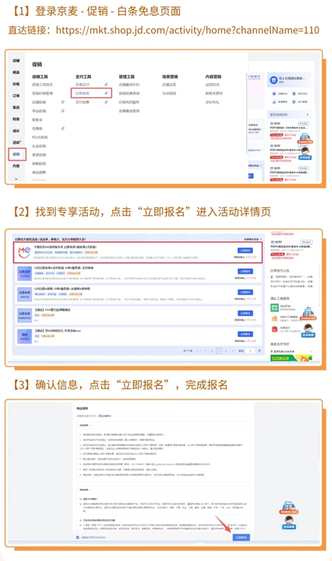 2.登录京麦报名「京ME伙伴版专享白天免息权益」活动,操作流程: