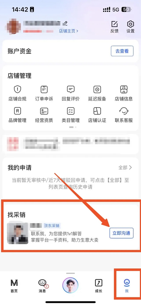 •APP端点击右下角「我」——找到「找采销」板块——点击「立即沟通」,即可跳转下载页面,若您已经下载京东ME伙伴版,则会直接跳转应用。