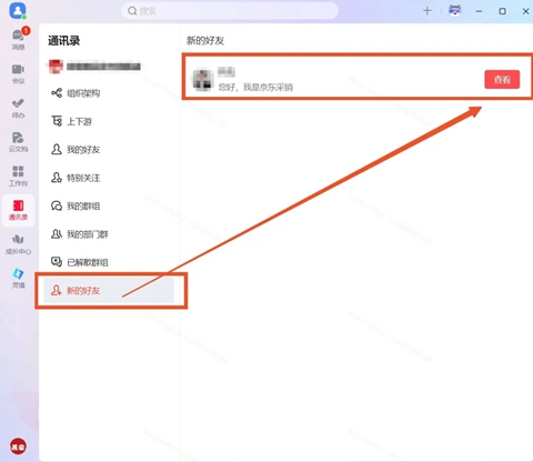 登录后您对应的采销将自动添加至「通讯录」——「新的好友」中,点击「查看」可随时发起会话聊天。