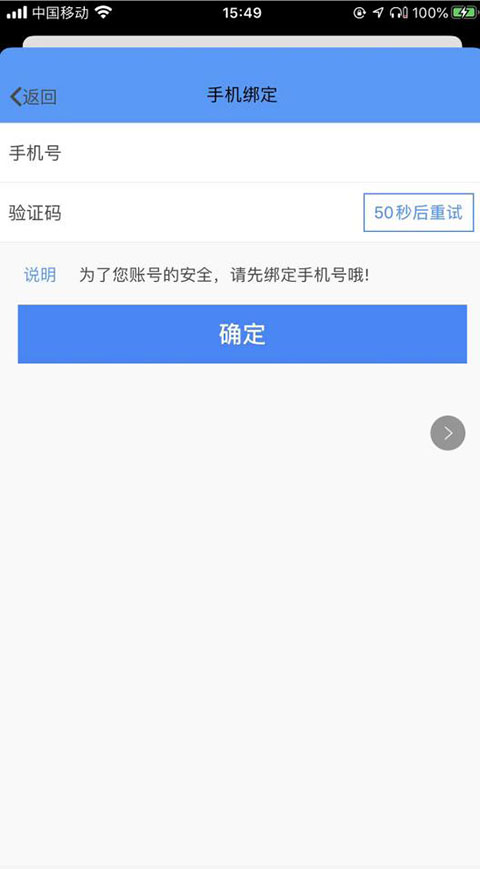 3、账号未绑定手机号的情况下,点击“登录”后,进入【手机绑定】页面。
