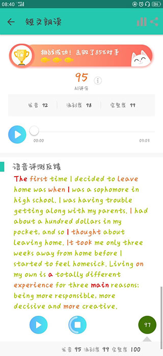 权威技术护航:评测系统与全国多地中高考口语考试同源,累计服务超百万考生,训练即备考,效果经实践验证