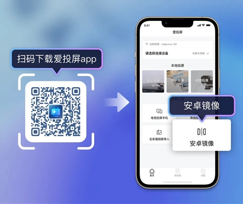 2、扫码下载“爱投屏APP”进入→点击安卓镜像;