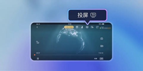 手机遥控操作:投屏后手机可作为电视遥控器,实时调节音量、播放进度、清晰度与播放速度。