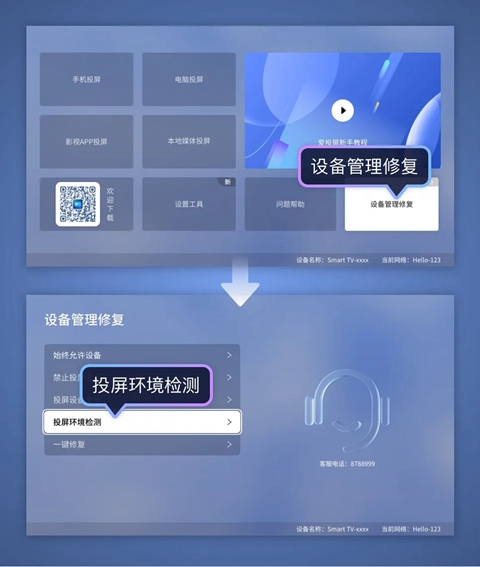 1、若之前可以正常使用投屏,突然出现手机无法搜索到电视设备,可选择以下方式处理——