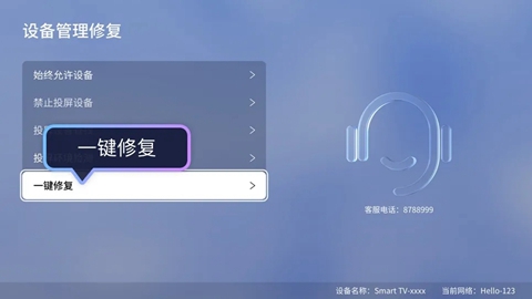 1、若手机无法搜索到电视设备,可手动操作一键修复后重新尝试搜索电视设备。一键修复后电视应用需要重启。一键修复后请再重新尝试搜索电视设备。