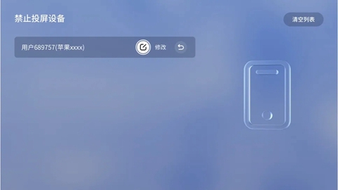 1、禁止投屏设备列表记录了设备投屏时,手动禁止的所有投屏设备。该列表下的设备投屏时会弹出已禁止投屏,是否解禁?如解禁即可再次发起投屏。该列表下的投屏设备也可以手动操作移除,移除后也可以再次发起投屏。