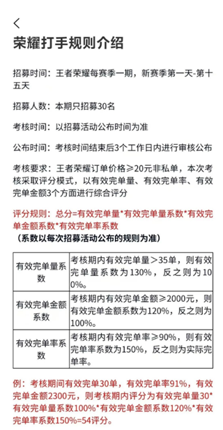 优质X王者农药一般刚进入平台的用户都是“普通打手”,想要成为“优质打手”,需要完成考核任务。完成考核任务后,就可接王者荣耀优质区的订单了