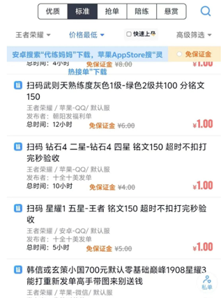 代练服务:涵盖游戏代练、段位冲刺、任务代做等多样化需求,用户可根据游戏类型与目标灵活选择。
