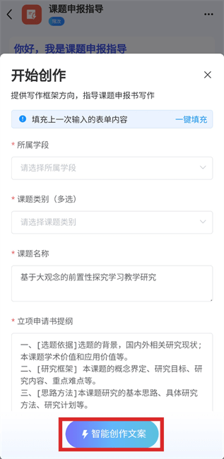 3.按照要求填写内容后点击“智能创作文案”进行生成即可