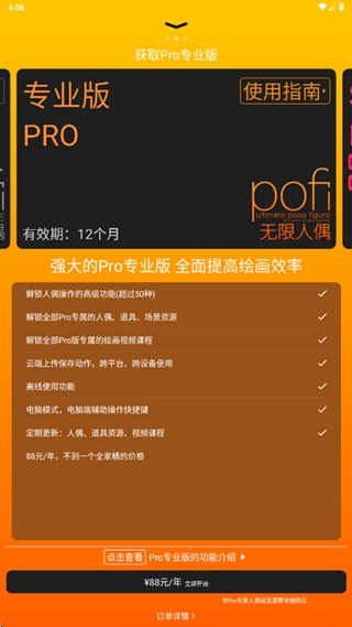 2、进入后右滑打开专业版,付费购买Pro专业版后即可解除人偶锁定。