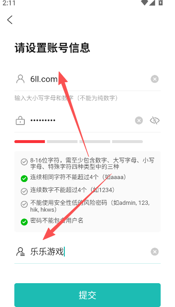 4、编辑个人信息资料部分,并填入用户名密码等信息,完成后提交。