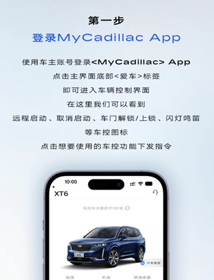 MyCadillac凯迪拉克远程控制车辆方法如下图示: