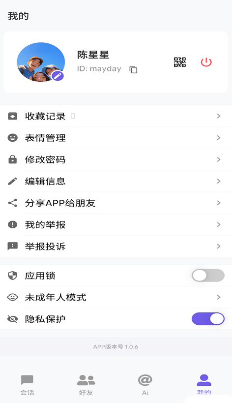 4、点开我的,支持修改密码、开启隐私保护等等。
