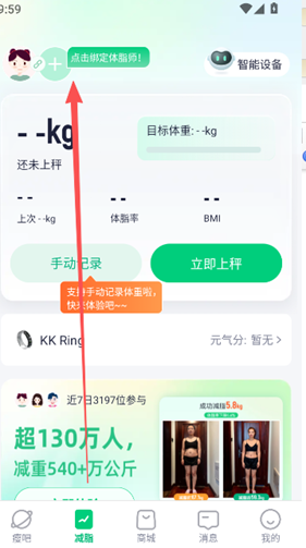 3、在软件使用界面减脂版块绑定体脂称。