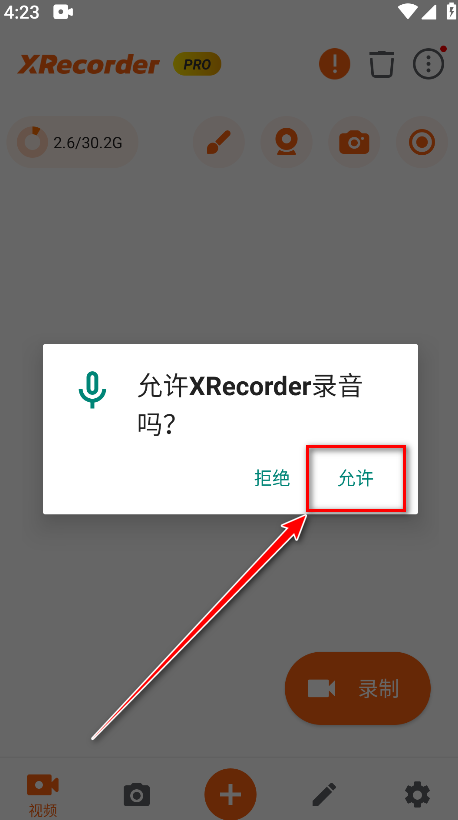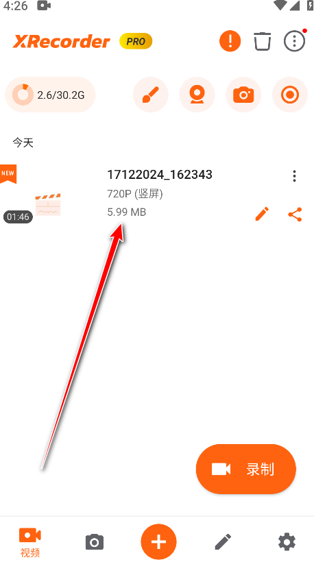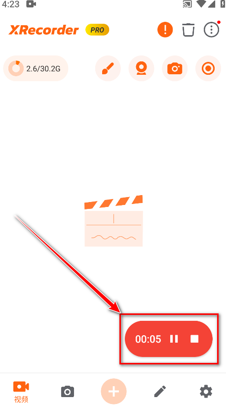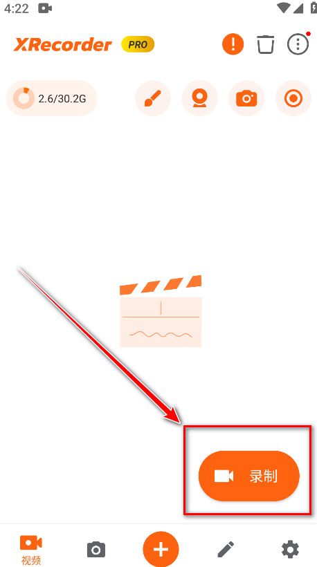 4.返回到首页,点击录制。