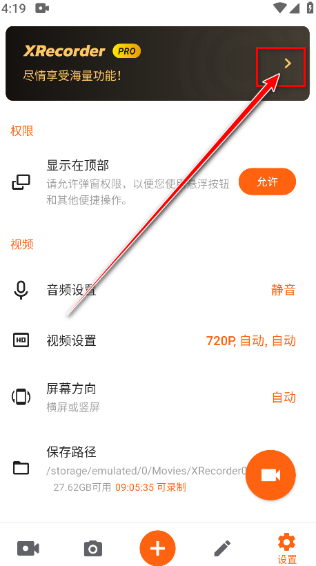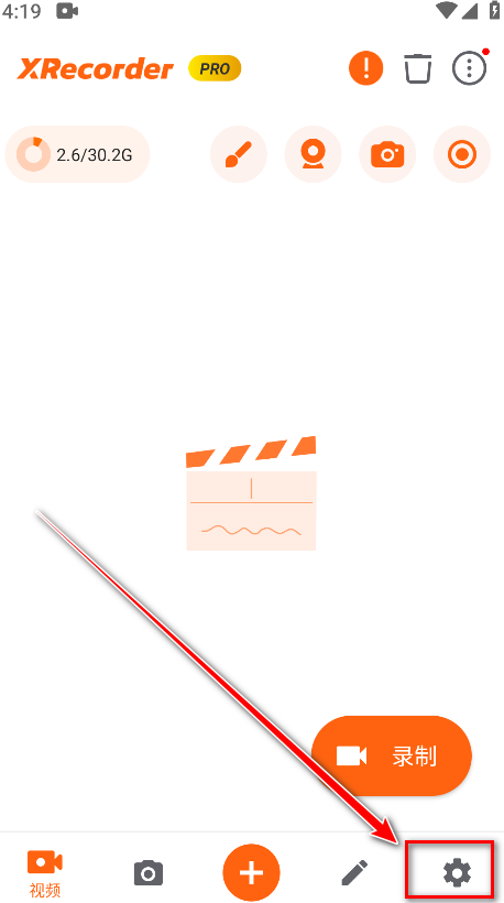 1.打开XRecorder,点击右下角的设置。