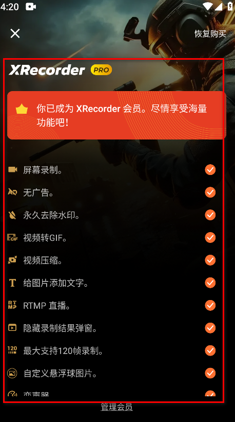 3.可以看到小编给大家带来的这款XRecorder已经解锁了会员,所有的功能大家都可以免费使用哈。