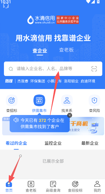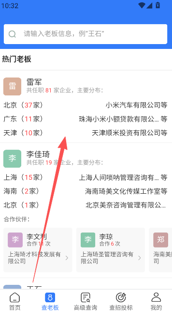 2、在首页选择你要查询的功能服务部分,比如查老板、查企业或是招投标等,这里都有提供。