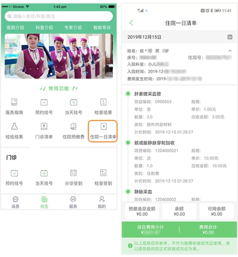 此功能适用于住院患者及出院近三个月的患者,可查看患者住院期间每日的费用清单。