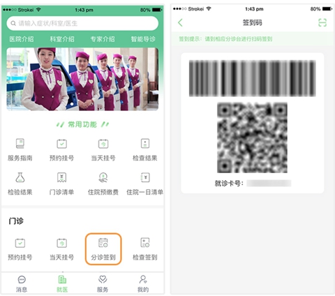 通过分诊报到机扫描区扫描“分诊签到”模块生成的签到二维码,完成分诊报到,仅限当天就诊。